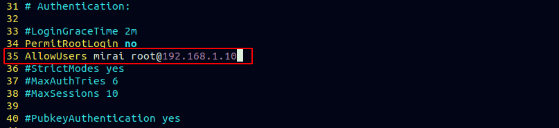Trên Server nếu có nhiều tài khoản thì có thể cấu hình cho phép các Host Client được phép SSH cụ thể bằng tài khoản nào. Ngoài ra, chặn toàn bộ Host Client SSH bằng User Root nhưng cũng có thể thiết lập ngoại lệ những địa chỉ IP nào được phép SSH Server bằng tài khoản Root.
