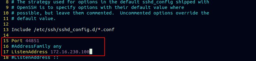 Ngoài ra, mặc định SSH cũng Listen trên mọi IP Interface của Server (0.0.0.0). Server nên có tối thiểu 2 Interface (2 IP Address), một Interface sẽ cung cấp dịch vụ chính và Interface còn lại dùng trong Management, cần cấu hình SSH Server chỉ Listen trên IP của Interface Management.