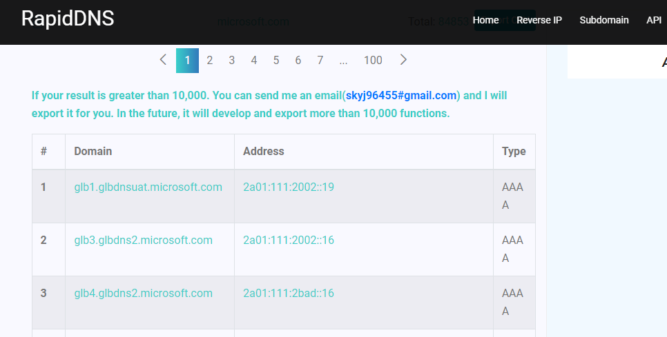 RapidDNS hỗ trợ truy vấn Subdomain, phân giải Domain sang IP Address và phân giải ngược IP Address sang Domain.