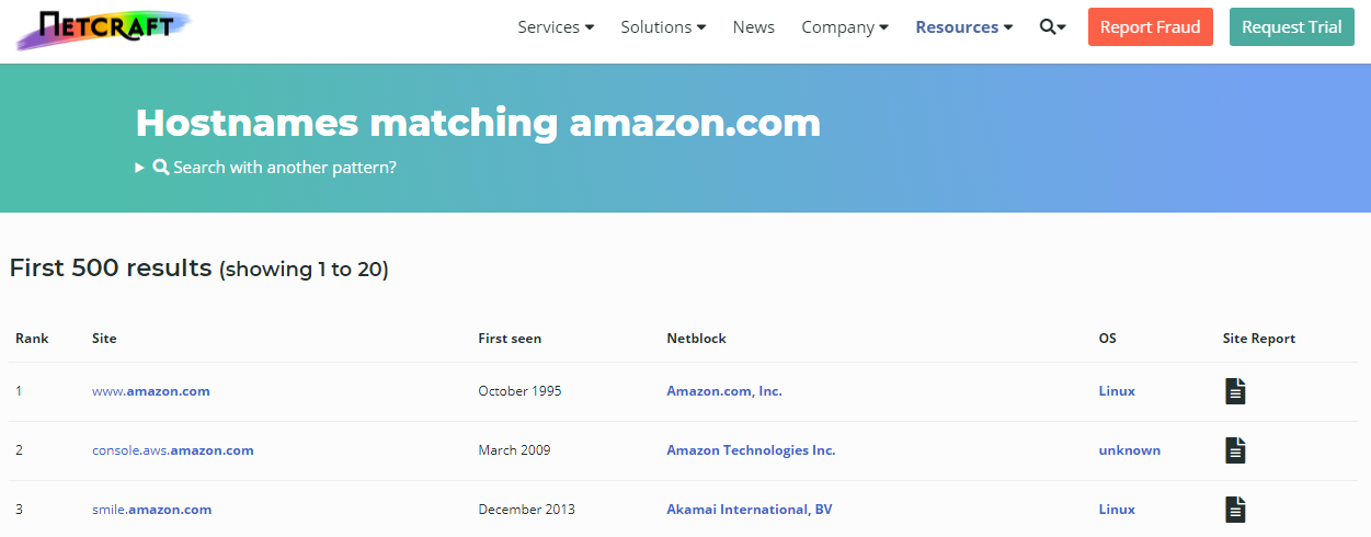 SearchDNS của Netcraft hỗ trợ truy vấn tất cả Subdomain và Report thông tin chi tiết liên quan đến Domain gốc.