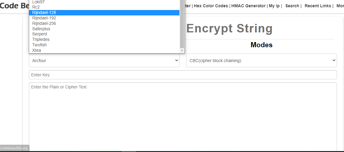 codebeautify.org (https://codebeautify.org/encrypt-decrypt)