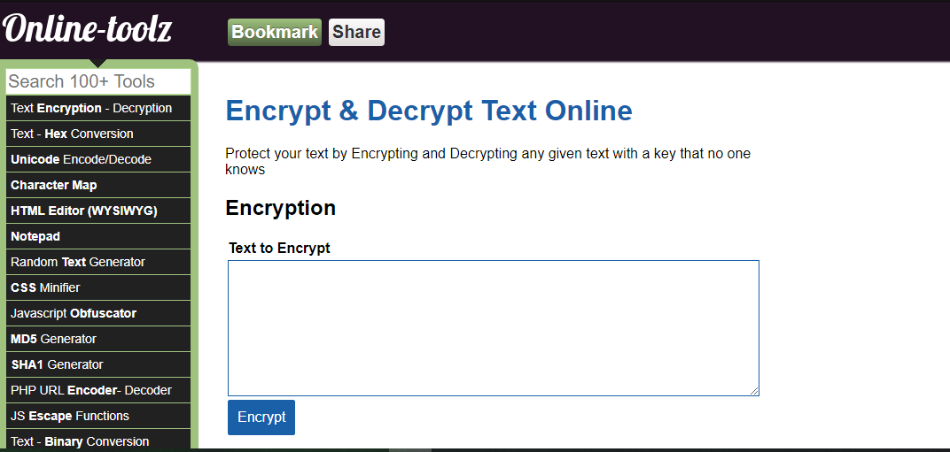 Có rất nhiều công cụ Online giúp mã hóa, giải mã dữ liệu theo nhiều thuật toán đa dạng phổ biến như codebeautify.org
