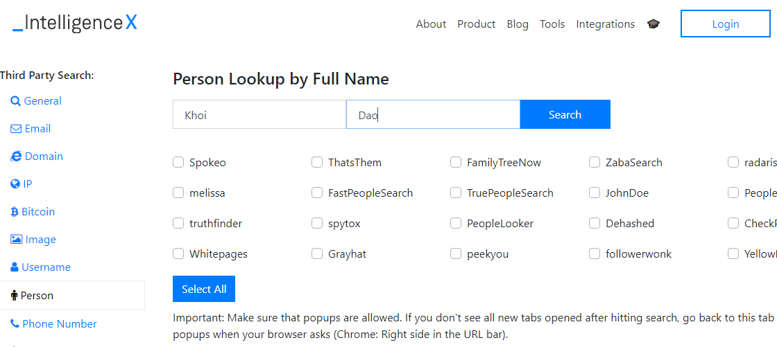 Intelius là công cụ giúp thu thập thông tin mạng xã hội về một đối tượng cụ thể.
