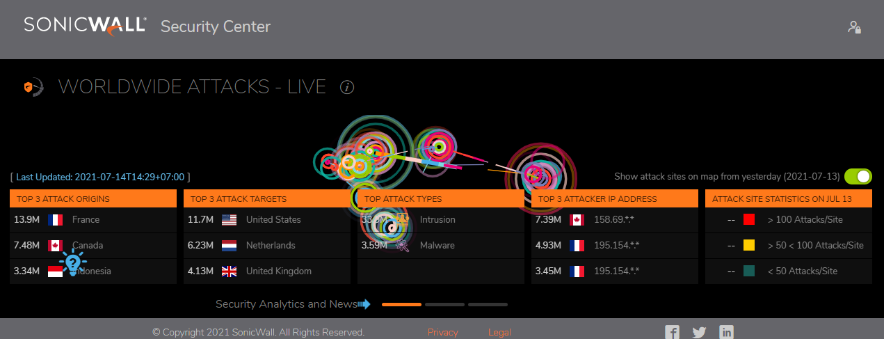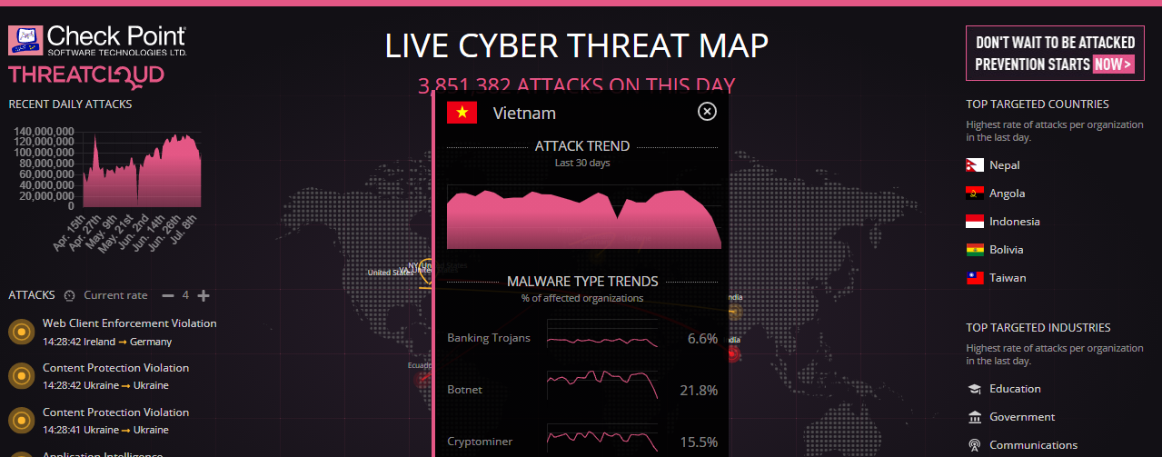 Checkpoint (https://threatmap.checkpoint.com/)
