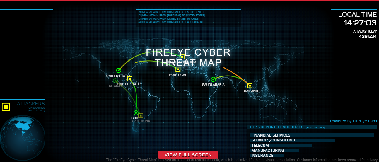 Fireeye (https://www.fireeye.com/cyber-map/threat-map.html)
