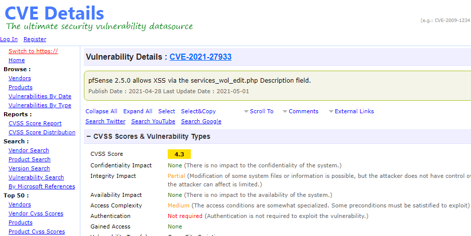 cvedetails hỗ trợ tìm kiếm thông tin CVE và đánh giá CVSS Score tương ứng.