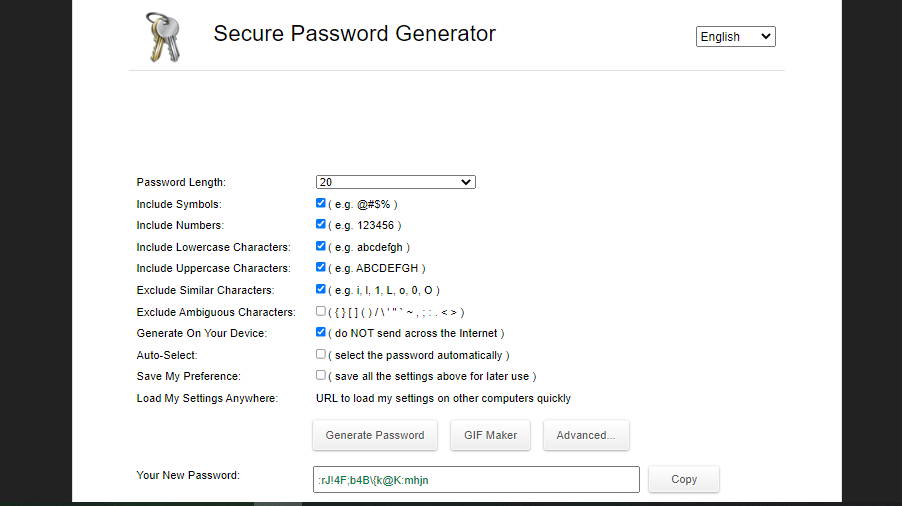 passwordsgenerator giúp tạo ra các Password Random với các tùy chọn ký tự và độ dài. Ngoài ra, còn có rất nhiều trang khác giúp tạo Password Random như Lastpast, 1Password, Random.org, …