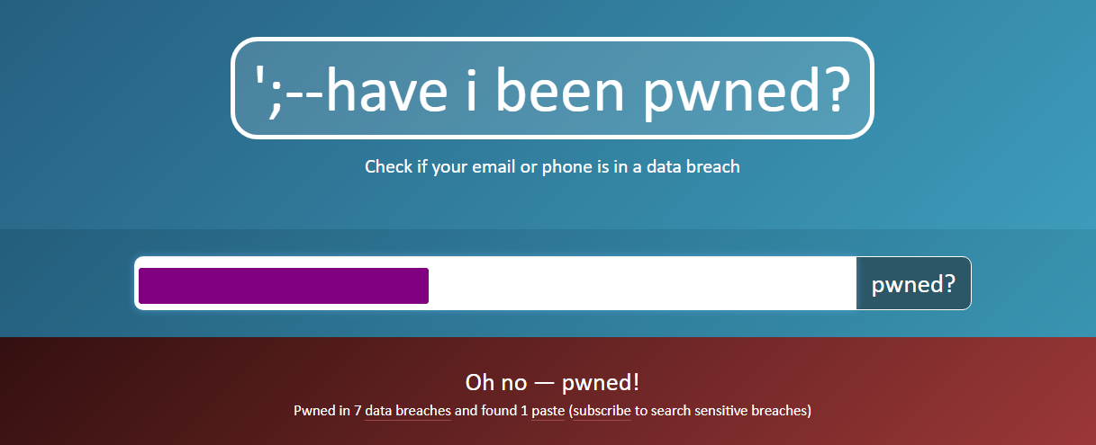 haveibeenpwned giúp kiểm tra các thông tin cá nhân Email và số điện thoại có bị rò rĩ trên mạng Internet và các nguồn (các trang Web) làm rò rĩ thông tin ấy.